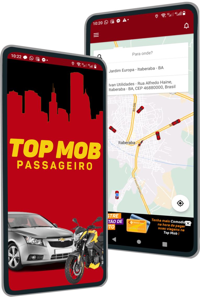 Top Mob é a maneira mais inteligente de se locomover. Um toque e um carro ou moto vai até você. Seu motorista sabe exatamente para onde ir. E você pode pagar com dinheiro ou cartão.